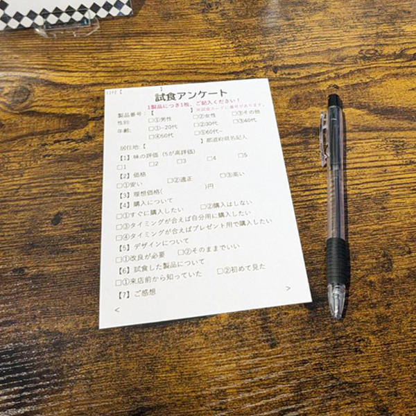 試食いただいた商品のアンケートにご協力お願いいたします。